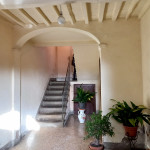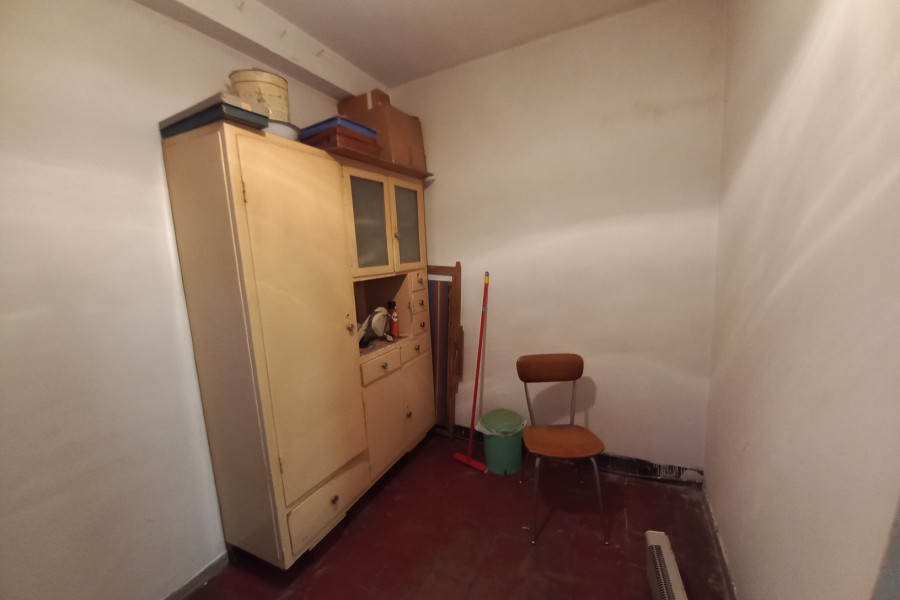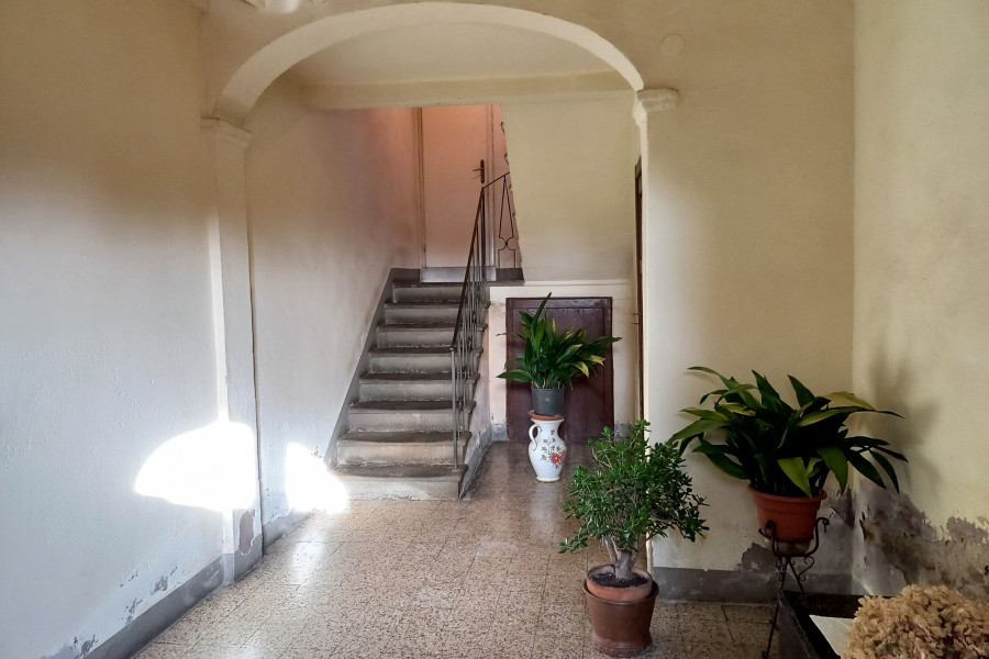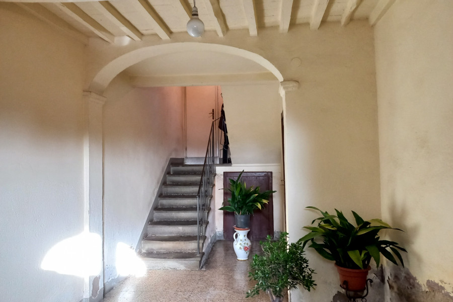 Store Room and stair to second floor, door to garden with wood oven